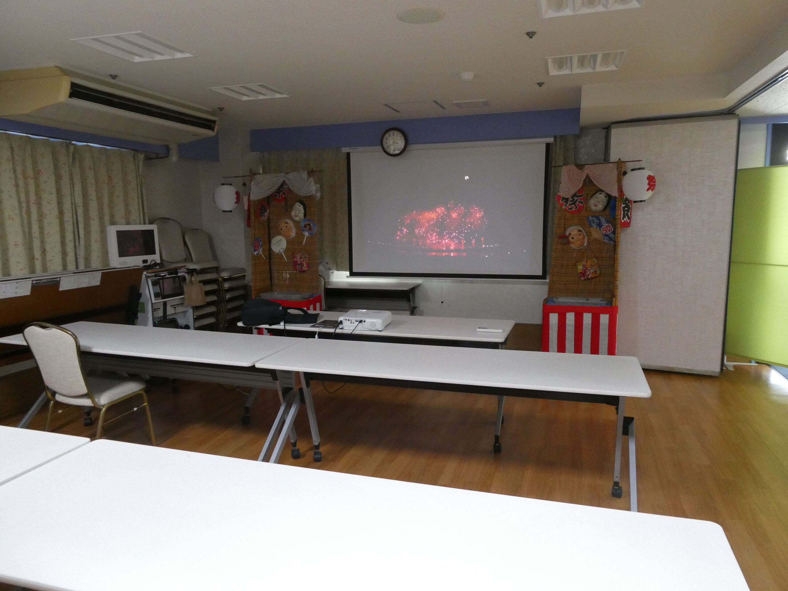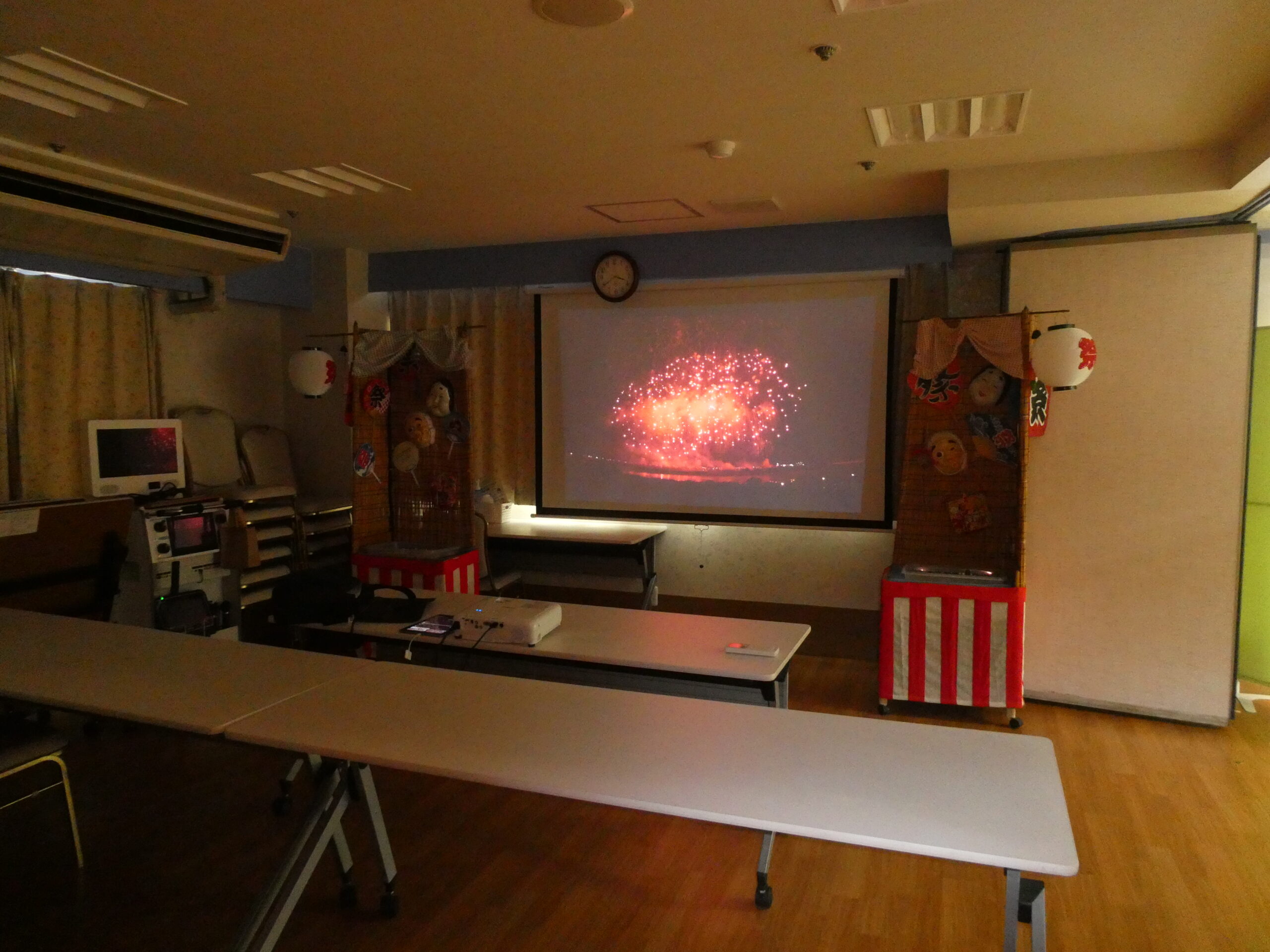 8月 苑内遠足 ひかり苑ブログ 公開日: 2025年11月8日 8/19に苑内遠足を行いました😉 ひかり苑のお祭りが納涼祭から秋祭りになった為、8月は苑内遠足としてお祭りに触れます🌟 全国の有名な花火大会🎆の様子を大きな画面に映して、鑑賞会を行いました❗ 鑑賞会のお供は、夏の風物詩かき氷でした❤️