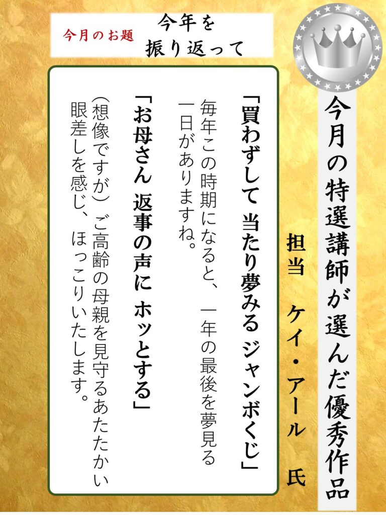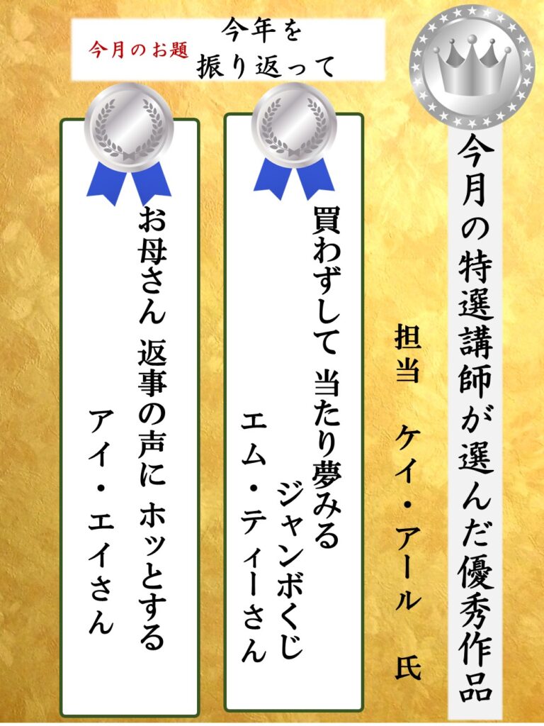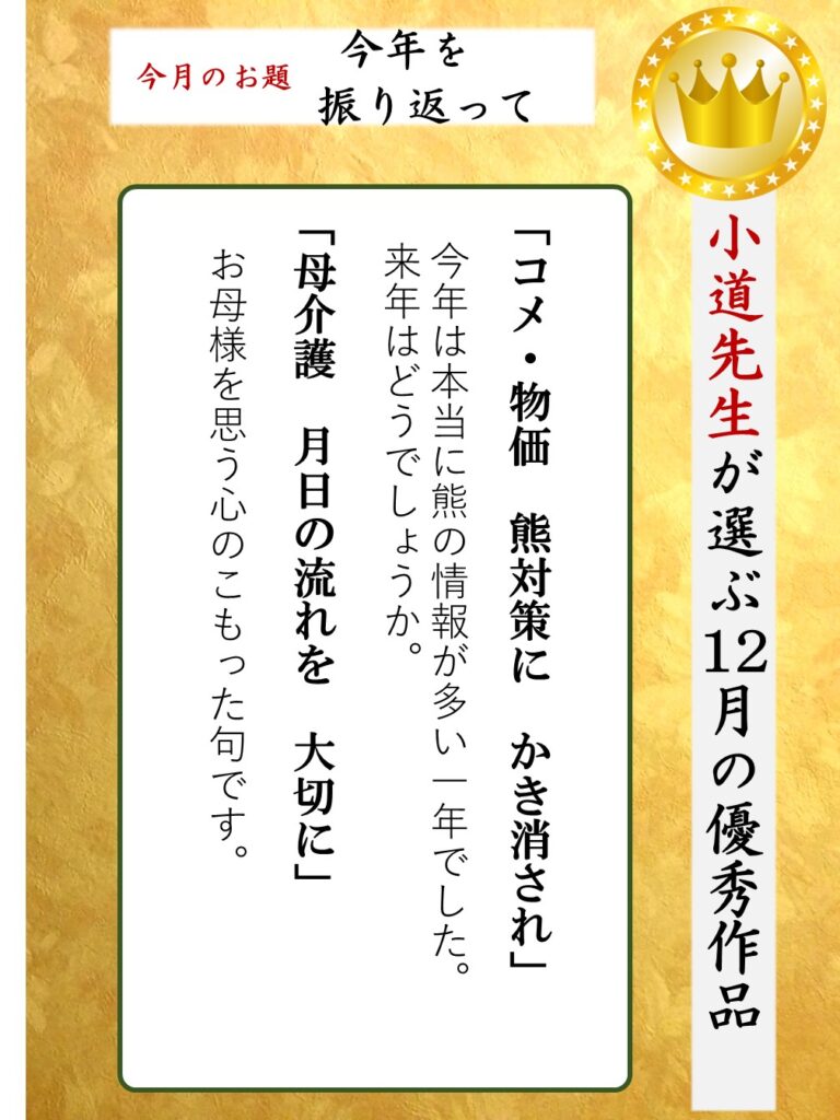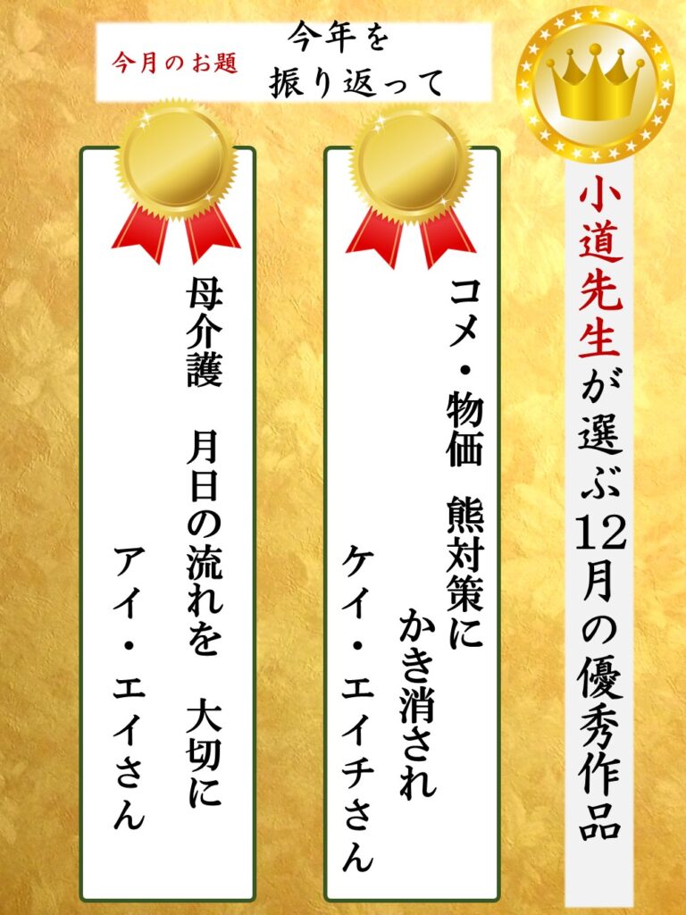 | 12月に小道先生が選んだ優秀作品はこちら↓ |