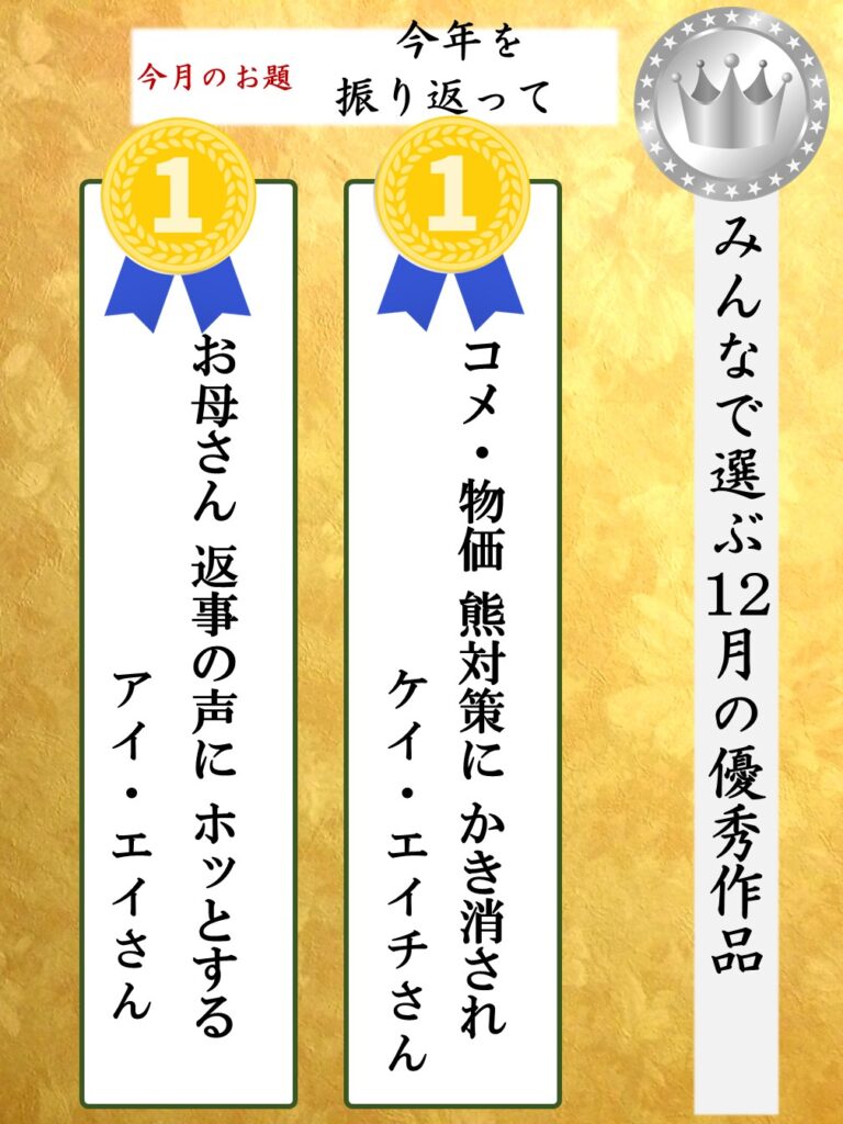 | そして今月の皆さんで選ぶ12月の優秀賞はこちらの2作品。 |